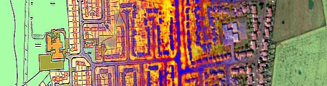 Footage of heat loss was converted into stills, then laid over a map of the area, before each house was given colour-coded ratings.