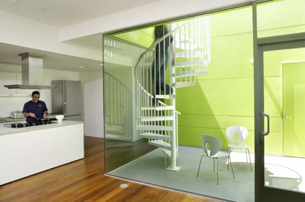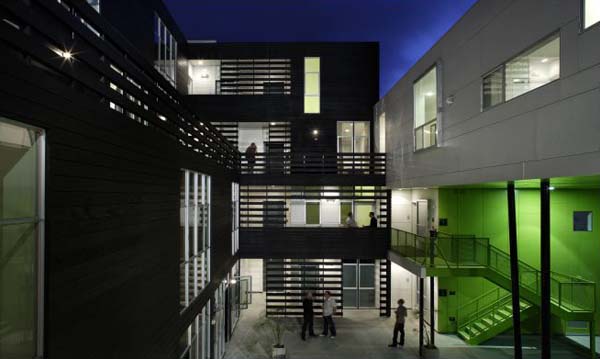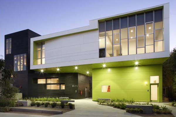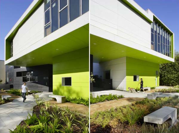 That building, called Habitat 825 – built right next door to the Schindler House and deliberately designed so as to cast no shadows onto its historically listed neighbor – has a particularly memorable use of the color lime green.