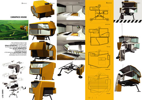 The Carapace House – a larger diagram of which can be seen here – is intended for use in “challenging natural environments.”