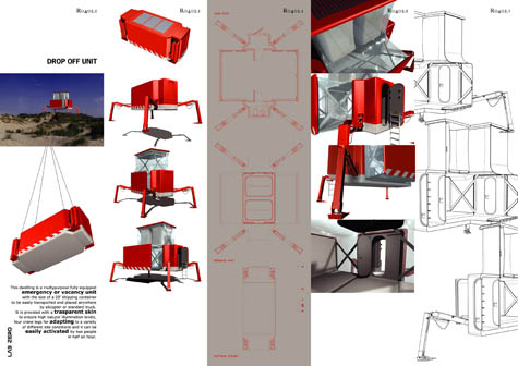 Similar to Lab Zero’s own Drop Off Unit, the Carapace House is temporary, mobile, and easy to “drop off” in a variety of locations.