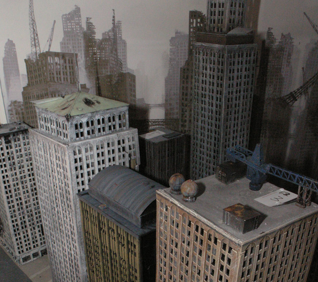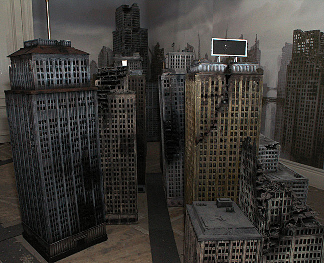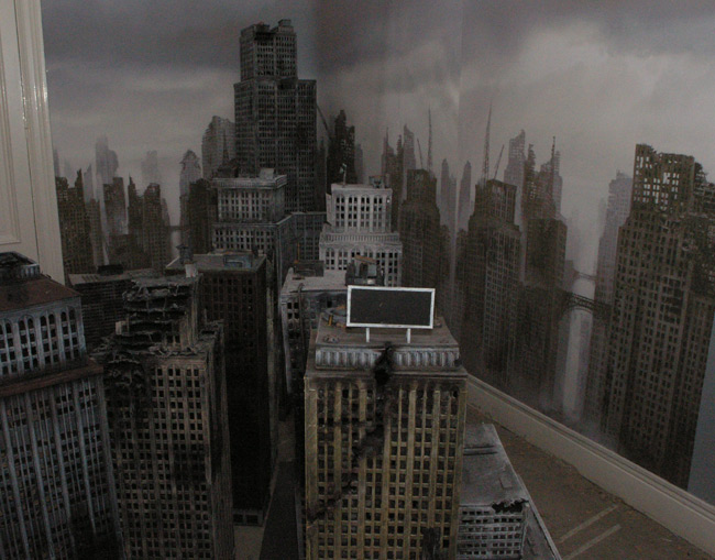 These are photographs of a miniature, partially destroyed Manhattan-like metropolis built inside some guy’s apartment in Sweden.