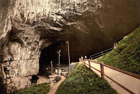 The old pier in Bangor. One of the Peak District caves. Edinburgh castle.