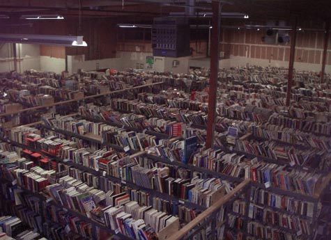 That kind of sounds like these warehouses – a morgue for books that no one reads anymore, where forgotten literature slowly molds in climate controlled tombs.
