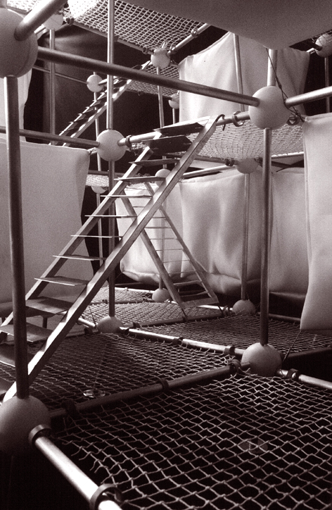 Don’t miss the maison elastique, or elastic house, a modular system of somewhat theatrical scaffolding, by Etienne Meneau – “made for those who like instability.”
