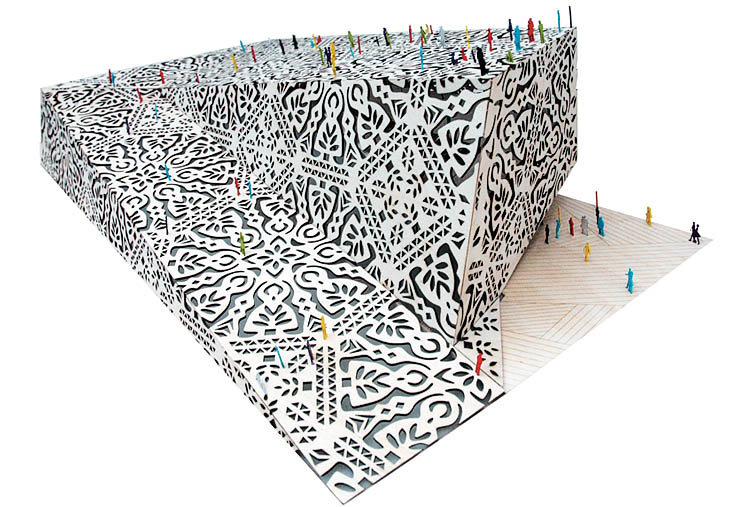 5. JT: I can definitely see your point – just what characteristics does folk paper art possess that would make it a good model for a building? The derivation of the building’s “outer envelope” especially gets my goat. Why oh why should you be able to theoretically bend a building down to one flat surface again? That bit just screamed first year architecture to me.