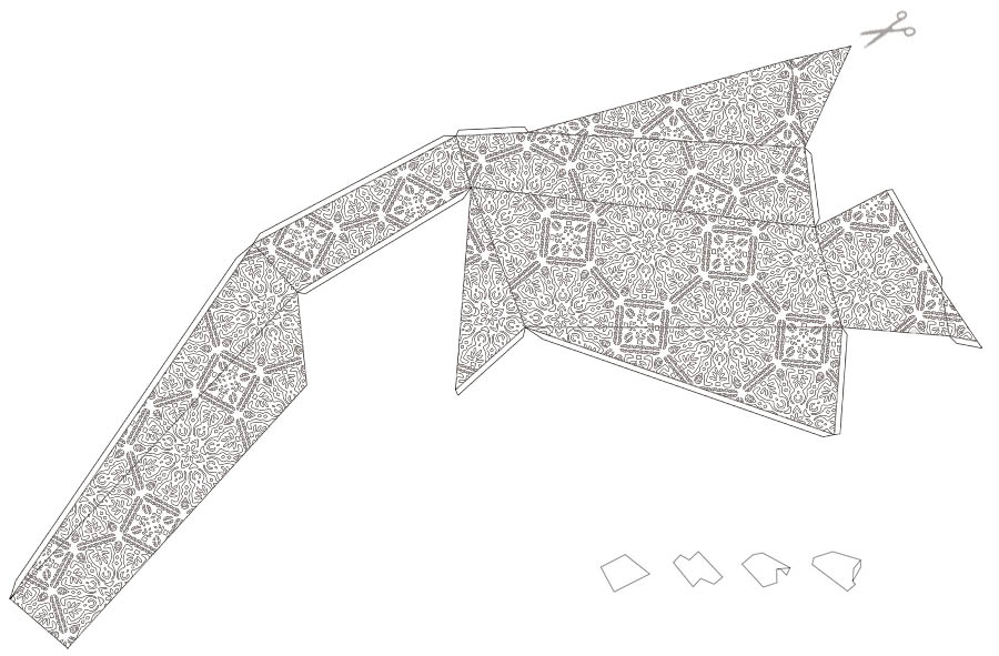 As the below diagram makes clear, this “paper cut-out” theme has been taken quite literally: the outer envelope of the building is actually a kind of incised wrapper, capable of unfolding to form a flat surface again (albeit one in which the patterns do not always match up).