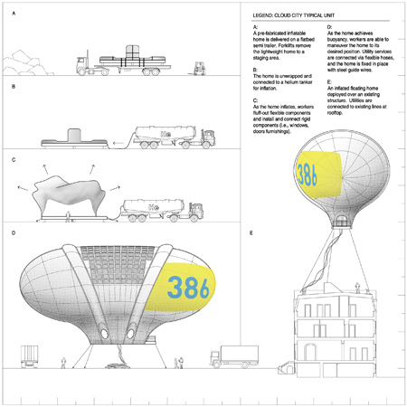 “Though perhaps an unusual proposal,” we read, “Cloud City is literally an uplifting experience that will allow communities to remain intact as they pull themselves out of the rubble.”