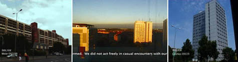 The new city has exploited images of terror, wrecked buildings, newsreel carnage routines, as an explanation of its desire to seal itself off, to put up physical barriers at all ports of its entrance. Vague spectres of menace caught on time coded surveillance cameras justify an entire network of peeping vulture lenses, A web of indifferent watching devices, sweeping every street, every building, to eliminate the possibility of a past tense, the freedom to forget. There can be no highlights, no special moments: a discreet tyranny of now has been established. “Real time” in its most pedantic form. It is only when there is no one to watch the watchers, when the machines are left to hose imagery on to banked screens in an empty room, that a melancholy futuristic poetic begins to operate: visionary street scenes unrivalled since the birth of cinema. The delight of a thing that is simple itself, mechanical process in all its essential mystery; a train coming into a station, firefly lights from a river of slow moving cars. A cinema that spurns the vulgar excitement of editing, the control freak buzz of nominating the close-ups, moving the camera. The inner sanctum of surveillance imagery in Bishopsgate Police Station oversees this revolutionary movement, this new art from: the City is at last able to compose its own poetry, with no human intervention…