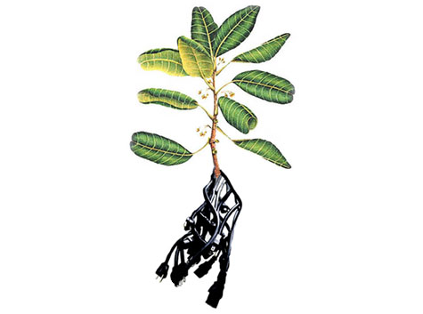 So is this the future of gardening? Growing hydroponic plants in an electrically charged, semi-liquid matrix in order to “stimulate” the production of new forms and compounds? You could perhaps plant star anise in vast, swampy test plots surrounded by High Voltage signs, and thus derive new anti-flu drugs from electrically active roots. Or generate new orchids, supersymmetrical and glowing, plugged directly into an electrical earth. The Philadelphia Flower Show will never be the same.