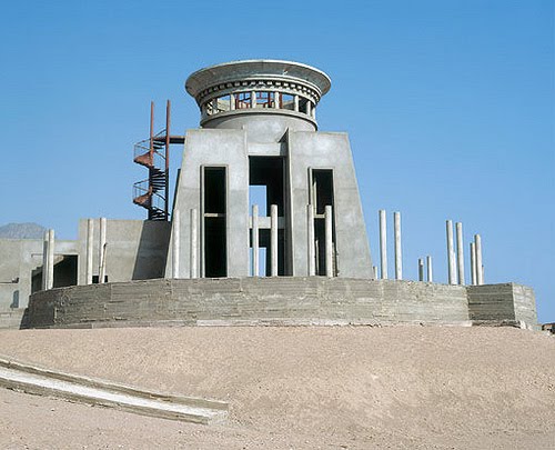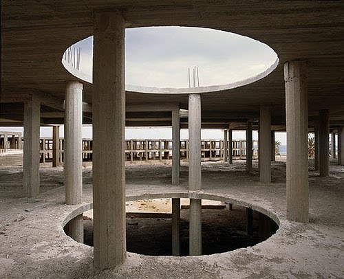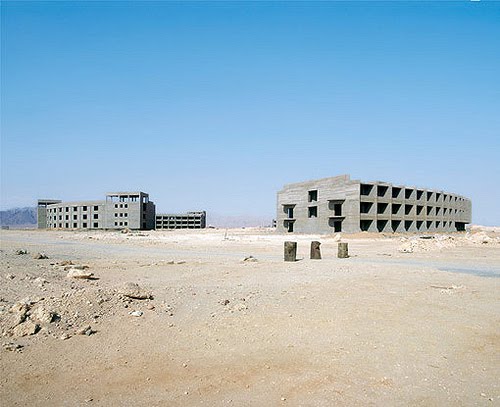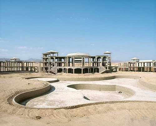 The hotels now look more like “architectonic sculptures” in the desert, the photographers claim, or derelict abstractions, as if some aging and half-crazed billionaire had constructed an eccentric sculpture park for himself amongst the dunes.