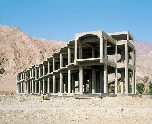 These are a very familiar sight around the Red Sea, not just in Sinai. As I’ve been told on visits to the area, it’s all to do with Egyptian planning law – it’s dirt cheap to throw up the speculative concrete like this so you have something to show to potential investors, and the developer doesn’t have to pay the duties until it’s finished. Some do get finished sooner or later – some don’t.