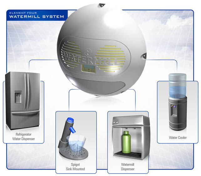 The WaterMill is installed unobtrusively on the outside of your home, using outside air, so it won’t dry out the air you breathe in your home. And don’t worry if your outdoor air is less than pristine – even if you live in a crowded city, the Watermill’s filtration system ensures your drinking water will be clean and free of toxins and bacteria – more pure than tap water or even spring water.