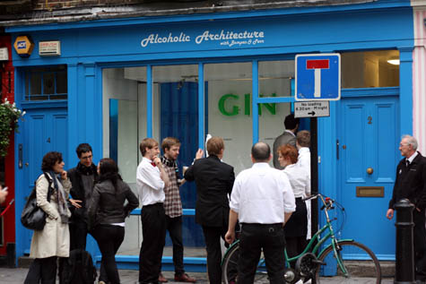 A former boutique storefront in London has become the temporary home for a pop-up bar with a twist: 2 Ganton Street is currently the U.K.’s “first walk in cocktail.” Created by Bompas & Parr (known for their earlier experiments with glow-in-the-dark jello and scratch & sniff cinema), the “Alcoholic Architecture” bar features giant limes, over-sized straws, and most importantly, a gin-and-tonic mist.