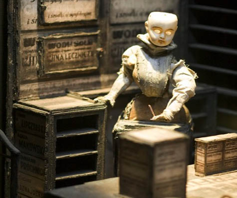 Today is your last day to see Dormitorium, an exhibition of interior sets from films by the Brothers Quay, on display now at Parsons in New York City. Dormitorium, we read, “explores the macabre fantasy world of twin brothers Stephen and Timothy Quay through the highly detailed miniature sets of their influential stop-motion animations.”