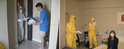 [Images: Hong Kong’s entire Metro Park Hotel was put under quarantine for seven days after an H1N1-positive Mexican tourist stayed there in May 2009; “psychologists were on standby,” we read. All photos courtesy of the China Post].