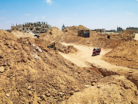 [Image: “Dirt from the digging litters the landscape,” Time explains. “The smugglers say that Israel’s blockade gives them no choice. Says one Rafah shopkeeper, ‘Even if Israel destroys all of the tunnels entirely, I’m quite sure that the they will only be dug again and again.'” Photo by Richard Mosse, from Time magazine].