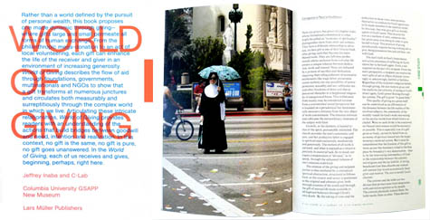 [Images: From World of Giving, published by Lars Müller, the New Museum, and Columbia University].