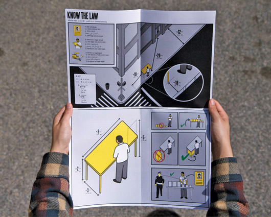 In any case, taken together, Chang’s Vendor Power! and Tenant Flash Cards projects offer two fantastic examples of how graphic design can be put to use in clarifying everyday, seemingly uninteresting legal situations—and I would love to see similar such endeavors occur elsewhere. The rights of the homeless in Los Angeles! Flashcards for international border crossers; your legal rights in quarantine; how to use the city in an electrical blackout. Or, for that matter, your rural hunting rights. Or the Geneva Convention! The rights of walkers in the British countryside. The possibilities are bewilderingly wide-ranging.