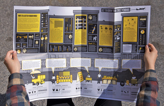 This is the second of two posts about design projects by Candy Chang; here’s the first. This one features a detailed poster and booklet about street vendor’s rights in New York City.