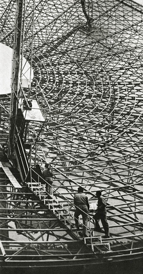[Image: And they ascend the antenna… Photographer unknown; photo from a 1969 issue of Broadcaster magazine].