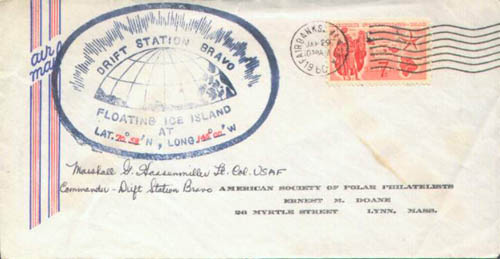 [Image: A postal marking from Drift Station Bravo, via Polar Philately].