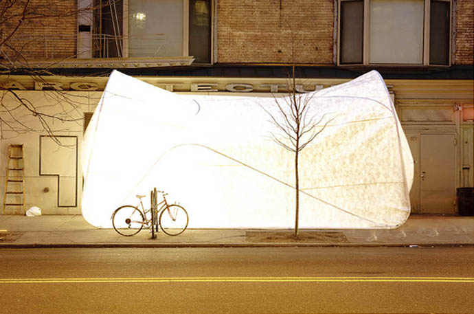 And, for the opening night party only, Suck/Blow, a pair of sidewalk pavilions constructed from Tyvek and pressurized air, by Jeffrey Inaba/C-LAB with former director of Storefront for Art and Architecture, Joseph Grima.