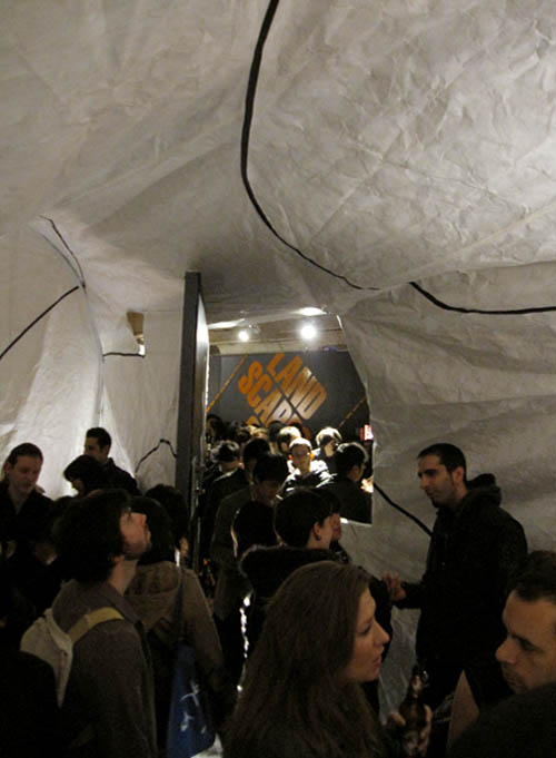 Now that Landscapes of Quarantine is up and open for view—and will be until April 17—we’re off for a quick vacation. The opening night was amazing; thanks to everyone who came out, to everyone who helped set up, and to everyone whose work appears in the show. Thanks, especially, to Glen Cummings of MTWTF for a fantastic exhibition design, and to Josh Hearn and César Cotta for sticking around all week for 3am vinyl installations, multiple coats of paint, and more.