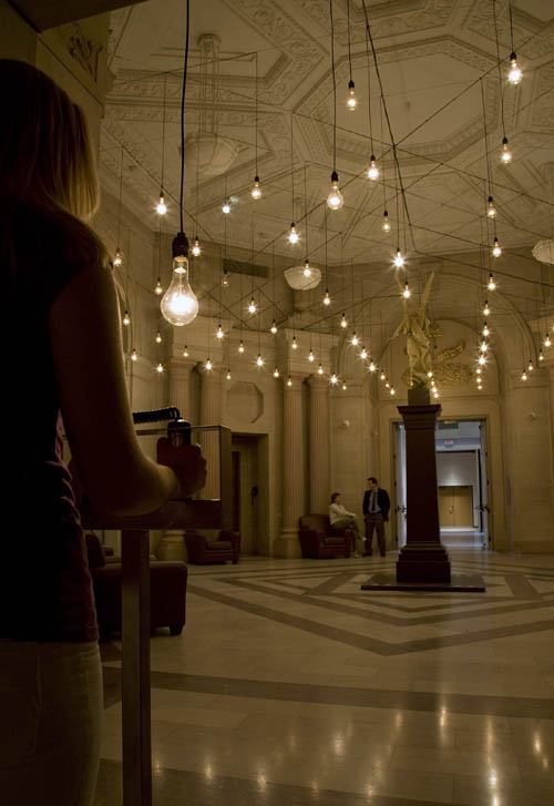 A project I’ve been meaning to write about ever since seeing it in Vague Terrain #16 is “Pulse Room” by Rafael Lozano-Hemmer.