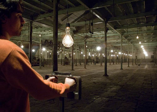 “Pulse Room,” originally produced back in 2006, was an “interactive installation featuring one to three hundred clear incandescent light bulbs,” the brightness of which was controlled by an interface and sensor that could detect “the heart rate of participants.”
