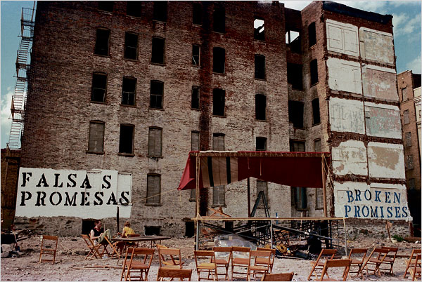 Just as a matter of record, the bilingual graffiti visible in the first image is a work by nyc artist john fekner.