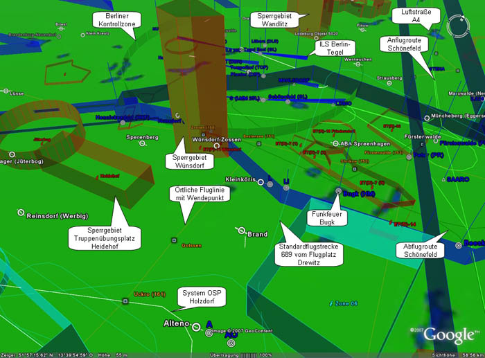 This is pretty great: a volumetric rendering of military airspace in East Germany during the 1980s, as imaged in Google Earth. “The air space over the GDR was a complex three-dimensional thing,” we read.