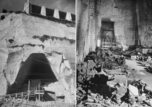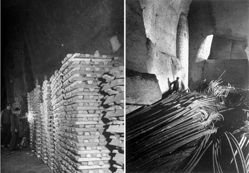 Photographer Margaret Bourke-White was sent by LIFE magazine to document the wartime reuse of the city’s most prominent geological features; from children playing on gravel hillsides to teetering stacks of agricultural machinery waiting quietly in the darkness for the day they could be reactivated, every conceivable activity of everyday life was hosted underground.