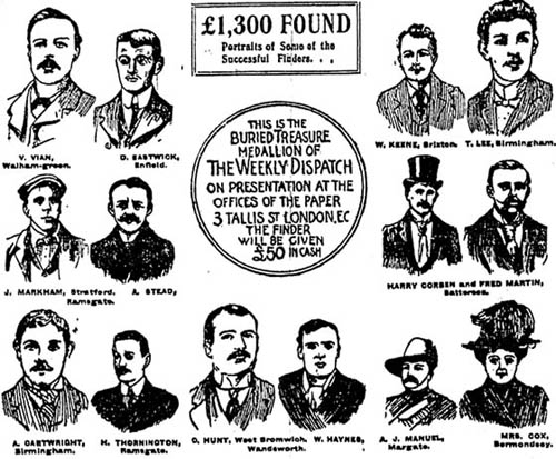 The paper used its first issue of the New Year to announce it had concealed a fortune in treasure medallions, the most valuable of which were worth £50 apiece. Each issue would carry a series of clues pointing to the prizes’ locations.
