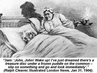 The cartoon from January 1904, included above, mocking the state of mind in which even a passing dream might really be an intuitive discovery of a buried treasure’s secret location, seems perfectly pitched here: convince people that there is something out there to be found—hidden gold or lost symbols—and a kind of neurosis for meaning breaks out. Everything is read and over-read, interpreted and over-interpreted. From the public craze for Dan Brown novels to Paul Slade’s “hysterical treasure hunters,” the urge to find something that you think has been hidden from you becomes all-consuming.