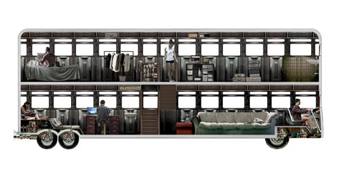 His “Bus Hotel,” for instance, is a double-decker bus transformed into a mobile, 7-bed hotel.