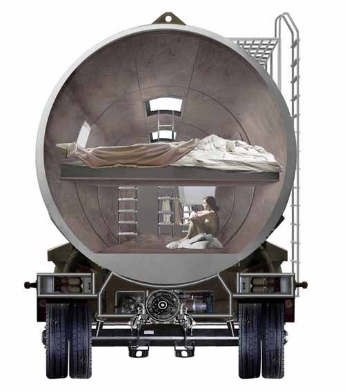 5. My first thought is that there's already a less well-heeled version of this actually happening – the occupation of abandoned trucks and buses by the refugees or otherwise homeless. I'm unsuccessfully trying to remember the title of a recent Afghani film I saw about a homeless family who temporarily take shelter in, among other places, a downed passenger jet on a dry plain.