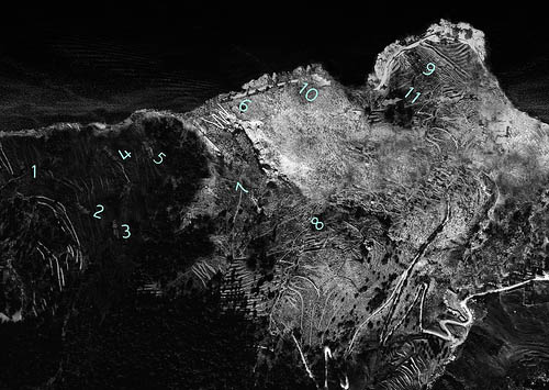 Simple concrete foundations and elementary water pools are proposed to be installed in non hospitable beaches or arid hills nearby the sea. The room units form independent cells, they can be covered by tissues during the day; they provide a quality connection to the Internet. The private or public character of each room is regulated by the chosen high of every unit. The high control system is located inside every room. Platforms go up and down following the will of every provisional inhabitant. A bigger screen, related to the bed, serves as a home cinema structure; a small office, a wardrobe and a shower are placed in the same moving platform. A common underground kitchen serves the needs of all the complex; a reverse osmosis desalination plant provides drinkable water to the invisible kitchen and to the units (the water pipes follow the length of the crane).