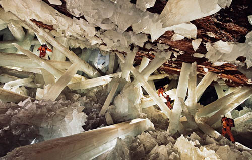 [Image: Mexico’s “Cavern of Crystal Giants” photographed by Carsten Peters, courtesy of National Geographic].