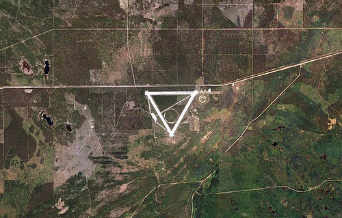 There was an entrance to the nearby Highway on the northeast corner of the triangle which was gated and which had no trespassing signs on the other side of it. As I drove back toward the west on the east-west runway I could see a giant circle in the middle of the triangle. I didn’t spend too much time investigating the circle but it was extremely odd as you can imagine.