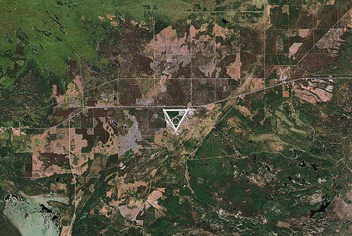 I checked the distance of the top leg of the triangle as I drove back to the little bush road and it was also a mile long. Talk about goosebumps. Once I realized what I was in the middle of, I couldn’t get out of there fast enough for fear that I was going to be stopped by a bunch of black government Suburbans driven by Men in Black.