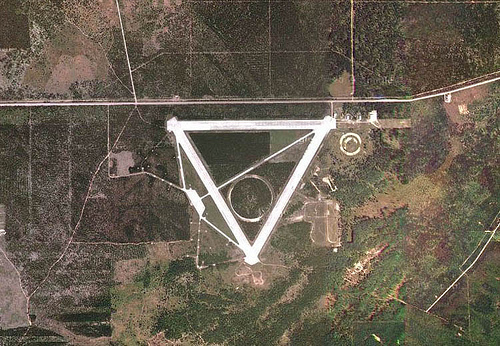 As it is, the site’s monumental geometry, with its northernmost airstrip aligned almost perfectly east-to-west, makes a massive and slightly puzzling triangle in the middle of heavy forest.