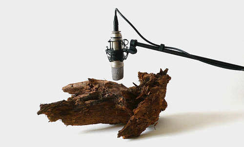 While we’re on the subject of acoustic botany, it’s worth recalling Swiss artist Zimoun’s Woodworms installation, whose minimalist set-up simply reads: “25 woodworms, wood, microphone, sound system.” You can watch—and listen to—a video of the piece here.