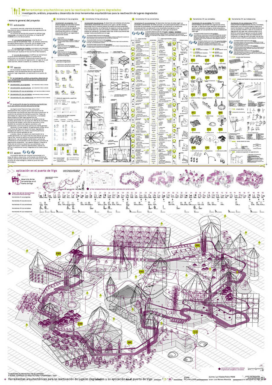 The following project by Lys Villalba Rubio—then a student at ETSAM’s Departamento de Proyectos Arquitectónicos in Madrid—is pitched as a way of using architecture as “an active element” in the “regeneration of degraded places.”