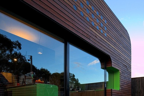 I like the peek-a-boo effect of the exterior lime green window sill.