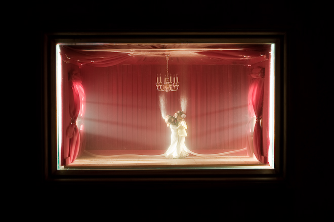 The ensuing world of the play included some interesting moments of self-reference; as Stephenson writes: “The basement of the Co-Op used to feature some beautiful leaded windows around the circulation areas and these have been re-used with elaborate models of show apartments and odd and surreal rooms placed behind the glass. Closer inspection shows that these surreal rooms are models of the rooms we’ve already passed through and (we’ll soon learn) rooms to come.”
