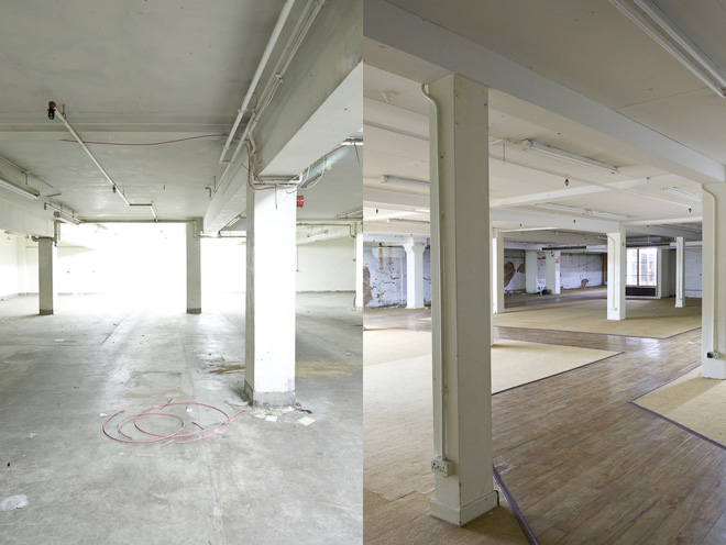 The venue was the old Co-Op building on London Road, Brighton, familiar to most people who live in the city. Opened in 1931, the Co-Op was the largest department store in the city when it closed 3 years ago. It has been neglected since… A large department store, wandering around it was incredible to see how quickly it had fallen into such a bad state. It reminded me of the first few chapters of The World Without Us, where Weisman talks about the processes that would take place around, inside and on our buildings should humans disappear. Indeed, it could be a study of such processes—damp creeps in everywhere, stripping render from the basement walls and warping and tearing the plywood paneling upstairs. Plant life eases through gaps and cracks. Carpet has lifted and the building has a terrific smell of decay. Yet in the stockrooms, still evident, is graffiti from the early 70’s—name checking footballers that have long since retired, bought pubs and passed on. Locally, there has been calls, growing stronger and stronger, for the owners or the council to inhabit the building. This is where dreamthinkspeak stepped in to temporarily transform the former department store into an incredible series of set-pieces, opening up such a familiar building to a public for the first time in three years, curious to see what had happened the their local shop.
