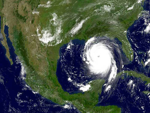 [Image: Hurricane Katrina approaches New Orleans—possibly attracted there, a new study suggests, by the “rough cityscape” of the greater metropolitan region].