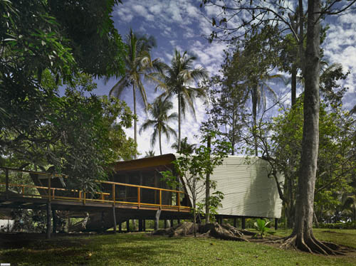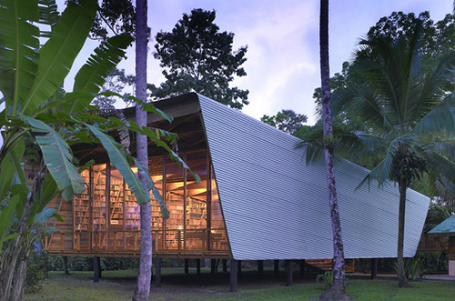 The house is an “intimate double pavilion for a writer in Costa Rica,” with a budget that topped out at just over $100,000. From the architect’s own description: