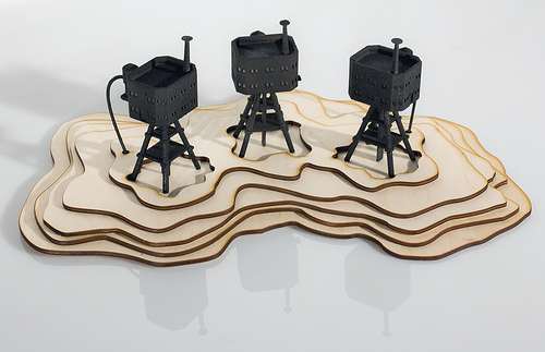 I like this tiny model of the Maunsell Towers, part of Jonas Loh’s Anti Syn Nation project—”a speculative micro nation,” he writes, supported by the “natural genetic engineering” of sea slugs. But I think someone should make a chess set entirely from Maunsell-tower like oil platforms and other modular microutopias at sea—or perhaps just a student thesis project presented using custom-milled chess pieces, with elaborate spatial rules governing the resulting game.