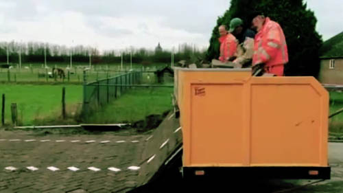 A few hours ago, we looked at the exoatmospheric potential of 3D printers in space, but what about road-printers here on our own home planet, printing brick & cobblestone streets through rural villages?